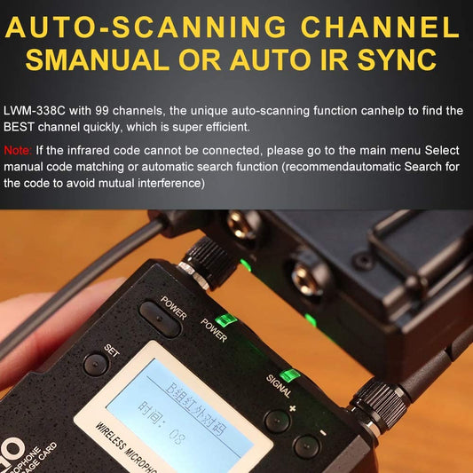 Regular price Rs. 1,120.00Regular priceUnit price / perRs. 1,999.00Sale price Rs. 1,120.00SaleWireless Lavalier Microphone System, LENSGO LWM-338C 99-Channel UHF Full Metal Professional Omnidirectional Wireless Lapel Mic for Canon Nikon DSLR Camera Smartphone Camcorder Video Recording (RX+TX)
