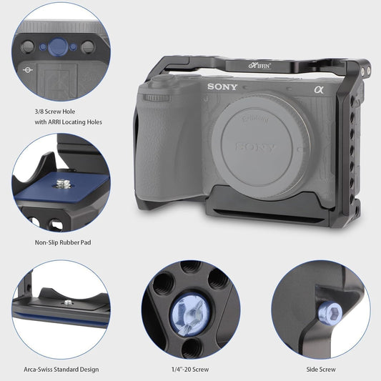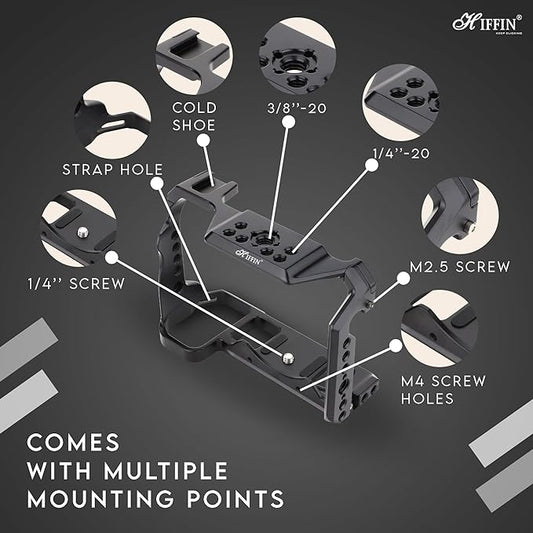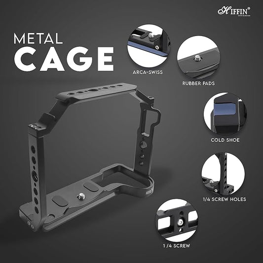 Regular price Rs. 3,299.00Regular priceUnit price / perRs. 4,699.00Sale price Rs. 3,299.00Sold outHIFFIN Metal Cage Compatible with Sony Alpha A6400, Precision Fit, Arca-Type Quick Release Base, 1/4" & 3/8" Screw Mounts, Cold Shoe for Microphone, Monitor & Light Expansion