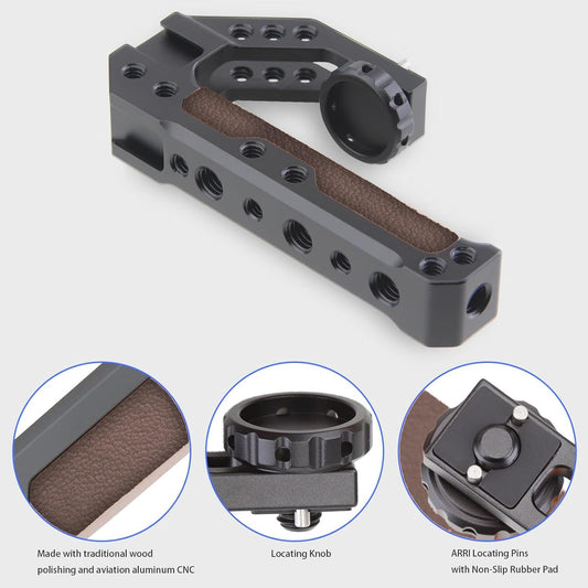 HIFFIN Handle Quick Release Handgrip for Camera Cage Rig with 3/8" ARRI locating pins, Anti-Off Design, and a Durable Leather-Metal Grip.