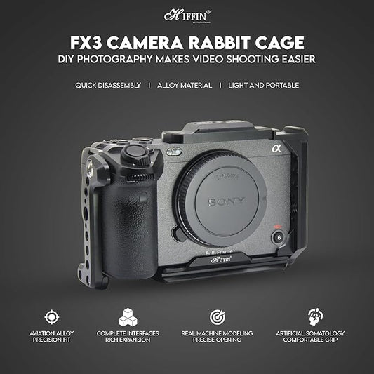 Regular price Rs. 4,499.00Regular priceUnit price / perRs. 8,988.00Sale price Rs. 4,499.00Sold outHIFFIN FX30 Metal Cage for Sony FX30/ FX3 Camera with HDMI Cable Clamp, NATO Rails and Built-in Arca Quick Release Plate, Interchangeable Full/Half Cage