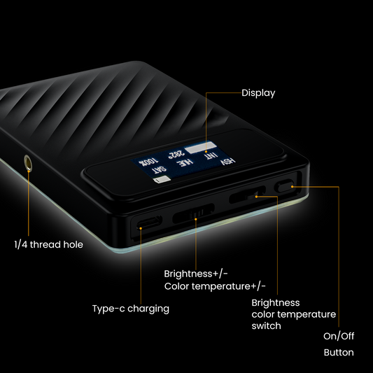 Regular price Rs. 6,399.00Regular priceUnit price / perRs. 9,999.00Sale price Rs. 6,399.00SaleULANZI P40 RGB LED Video Light 40W, 5000mAh, CRI96+, 2700K-6500K, PD Quick Charge, Fan, Magnetic Diffuser, 1/4" Thread
