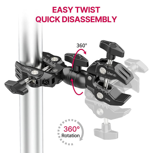 Regular price Rs. 2,499.00Regular priceUnit price / perRs. 2,999.00Sale price Rs. 2,499.00Sold outULANZI Super Clamp Double Camera Clamp, R096 Crab Plier Clip Bracket Mount Monitor Magic Arm Double Ball Head Adapter for Photo Studio Light Stand, Photography Reflector, Photo Boom Stand, Cross Bars