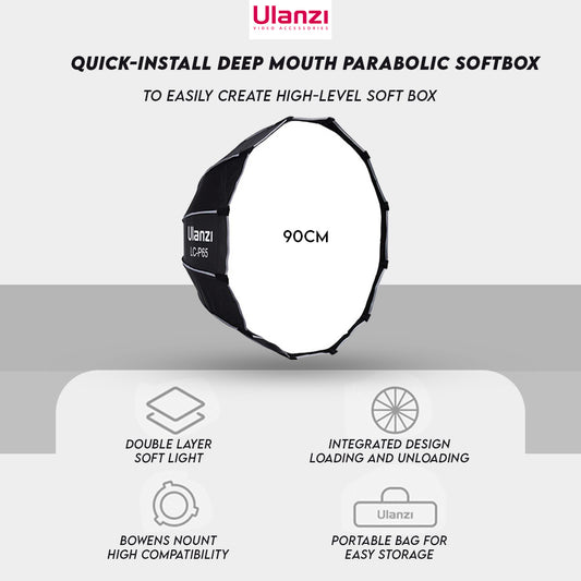 Regular price Rs. 2,100.00Regular priceUnit price / perSale price Rs. 2,100.00Sold outULANZI (90 cm) Lightweight & Portable Soft Box Comes Quick Release Octagonal Softbox With Grid & 2 Diffuser Sheets | Carrying Case | (Octagonal Softbox 90 cm)