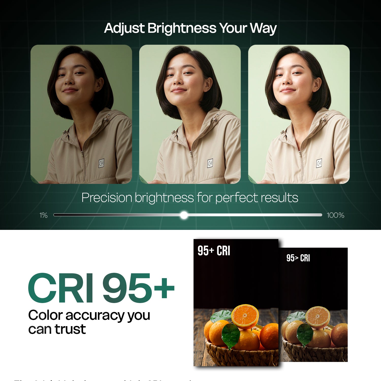 High CRI 95+ for True Colors- Achieve accurate and natural color reproduction with CRI 95+, ensuring your photos and videos look realistic and professional.