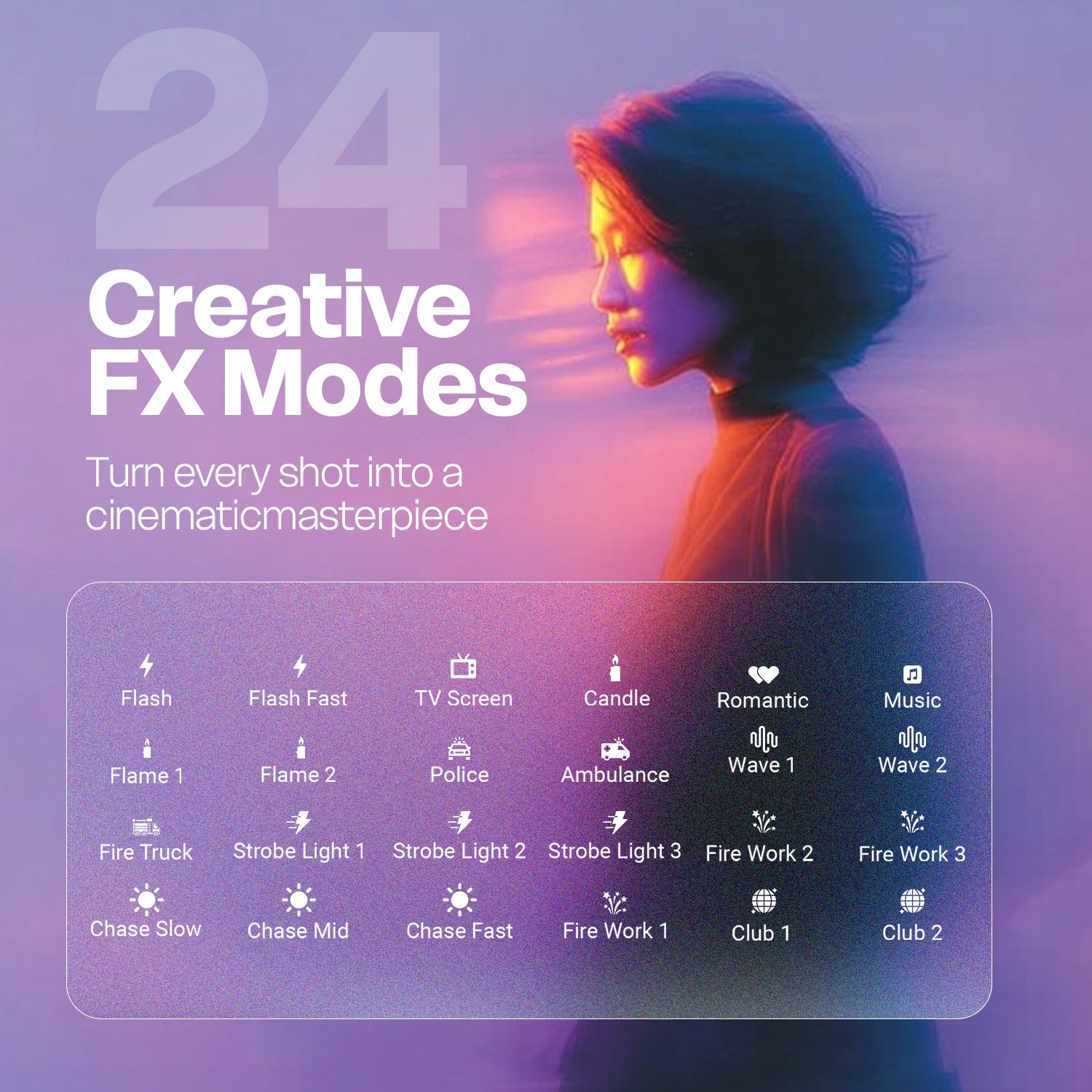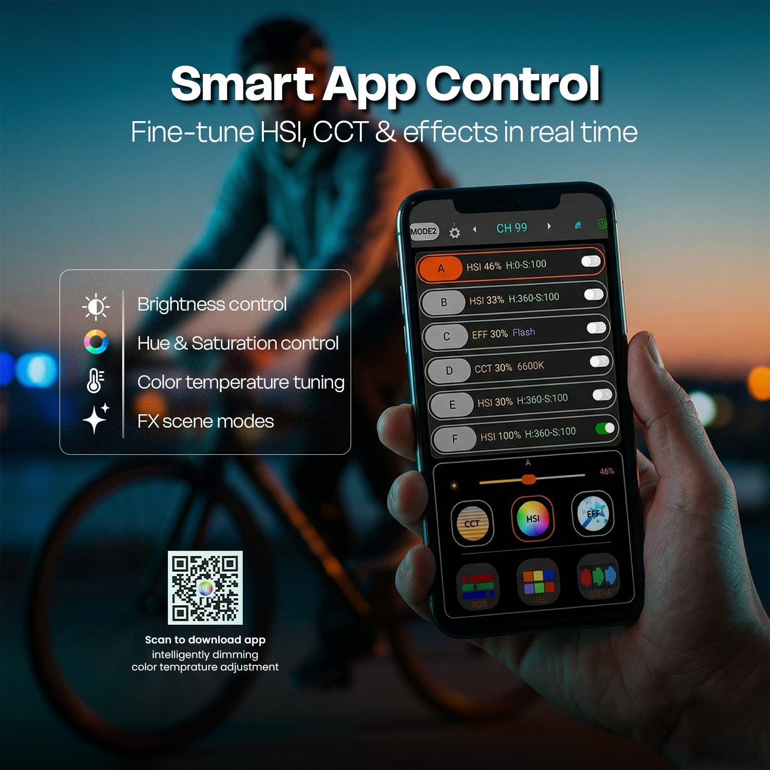 Full RGB & Bi-Color Control (2700K–6500K) - Easily adjust color temperature from warm to cool light and explore RGB lighting effects to create cinematic visuals and dynamic scenes.