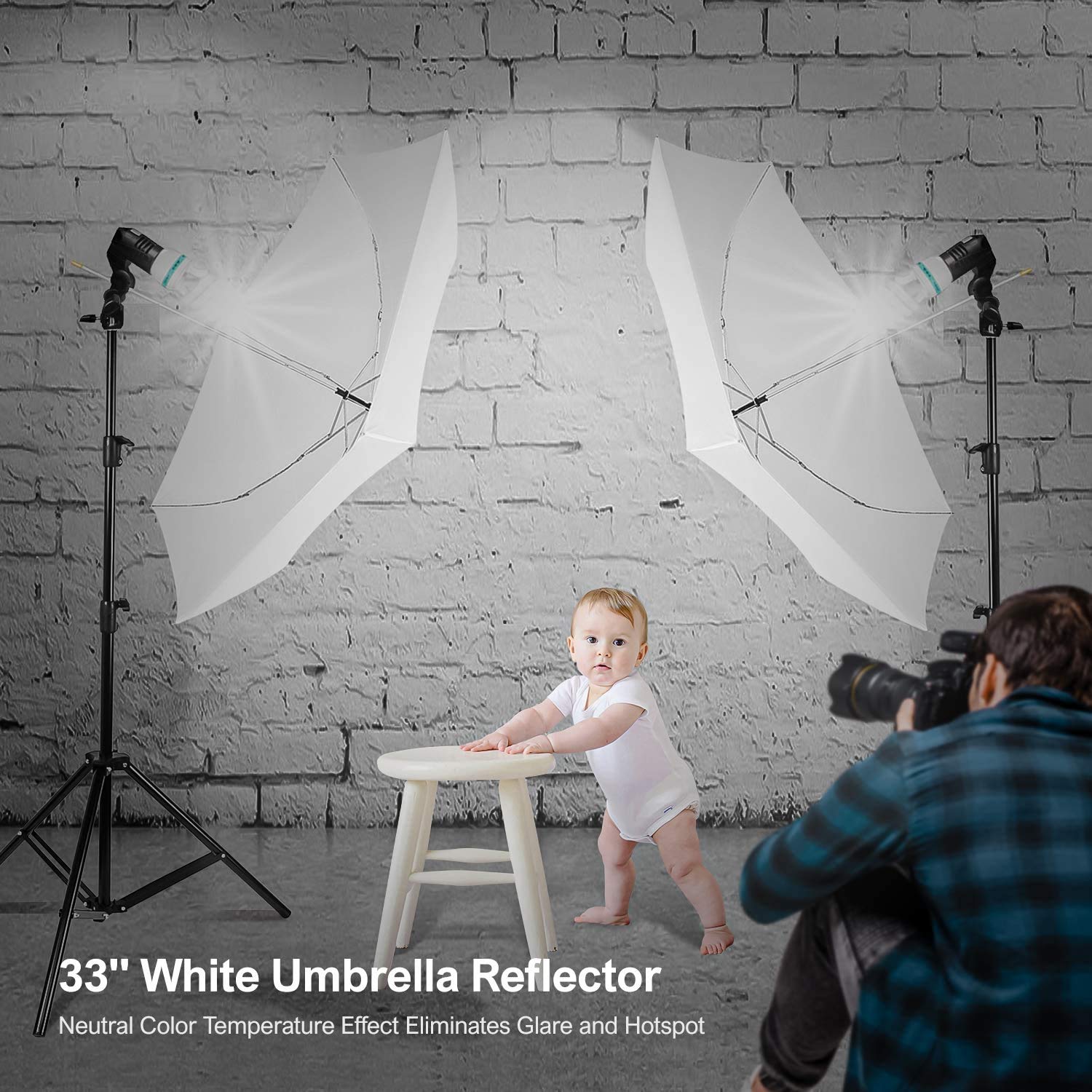 - Contents: (1) x Background top pipe / (3) x Clip / (1) x Grenn Background curtain / (2) x E27 single holder / (4) x 9ft Stand / (2) x 20w Bulb / (2) x Umbrella x Heavy Duty Portable Carry Bag