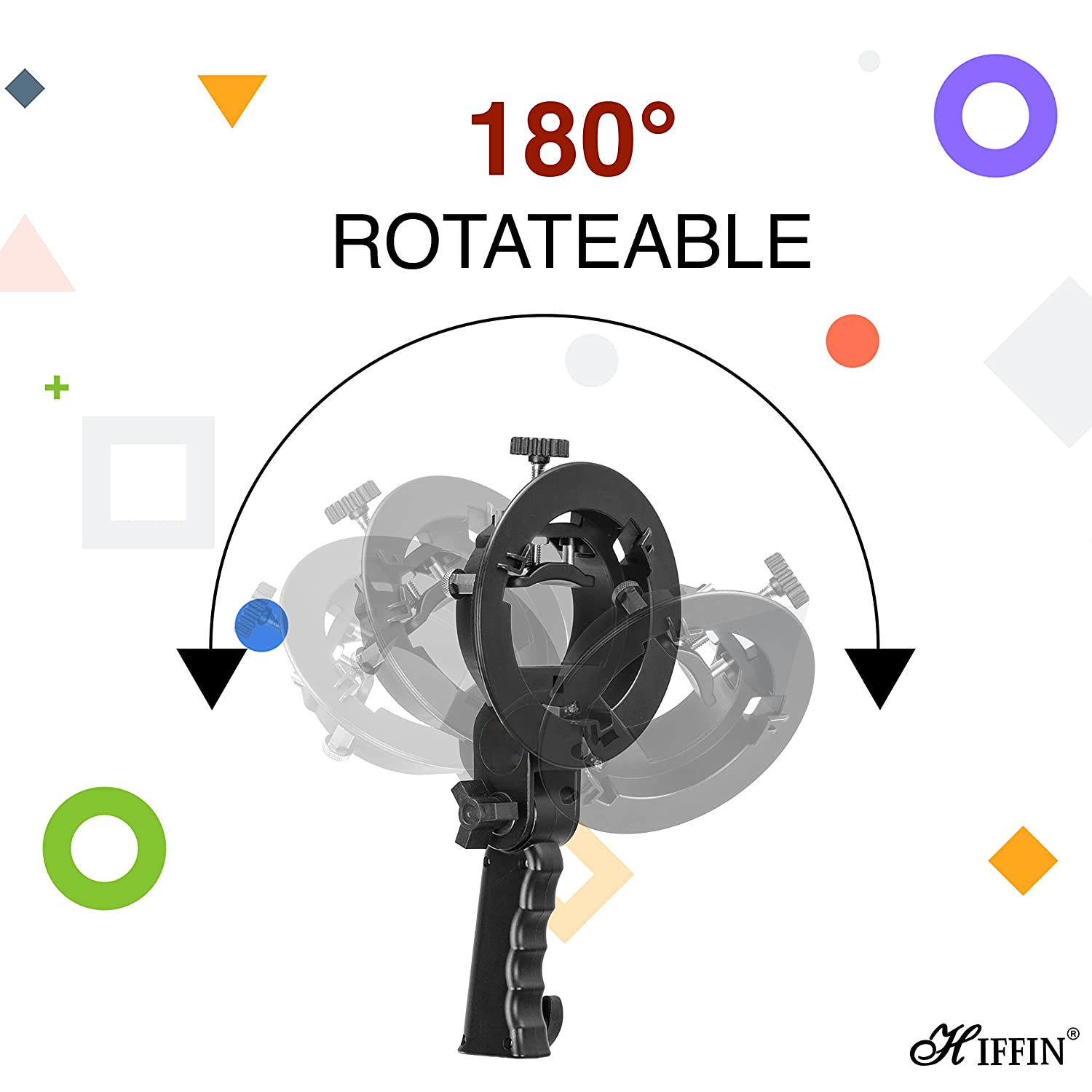 HIFFIN® S-Type Bracket Holder with Bowens Mount Kit with 9ft Light Stand Mark III for Speedlite Flash Snoot Softbox Beauty Dish Reflector Umbrella 9ft Light Stand| Umbrella |Carry Bag