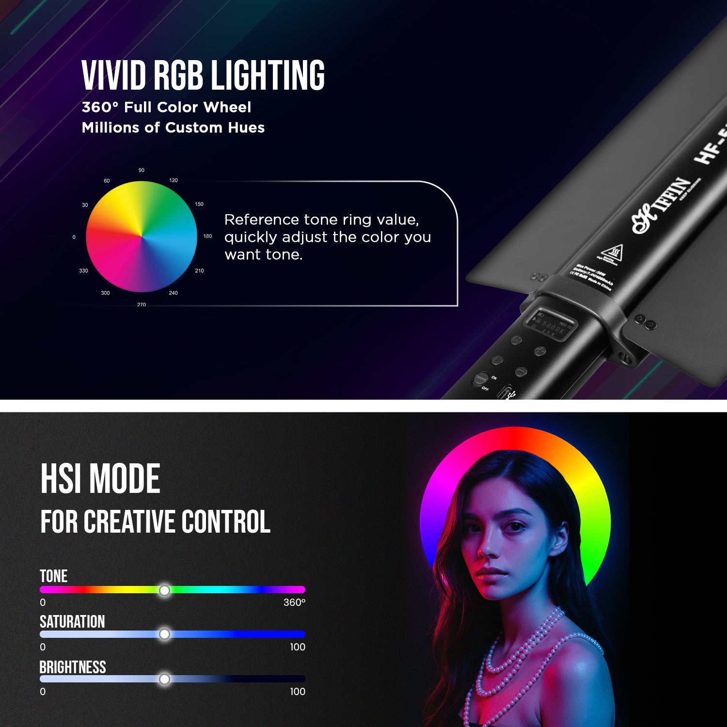 - Adjustable RGB & CCT Mode: Explore unlimited creativity with RGB, CCT, and HSI modes offering an adjustable 2500K-9900K color temperature, perfect for creating stunning lighting effects for photography and videography.