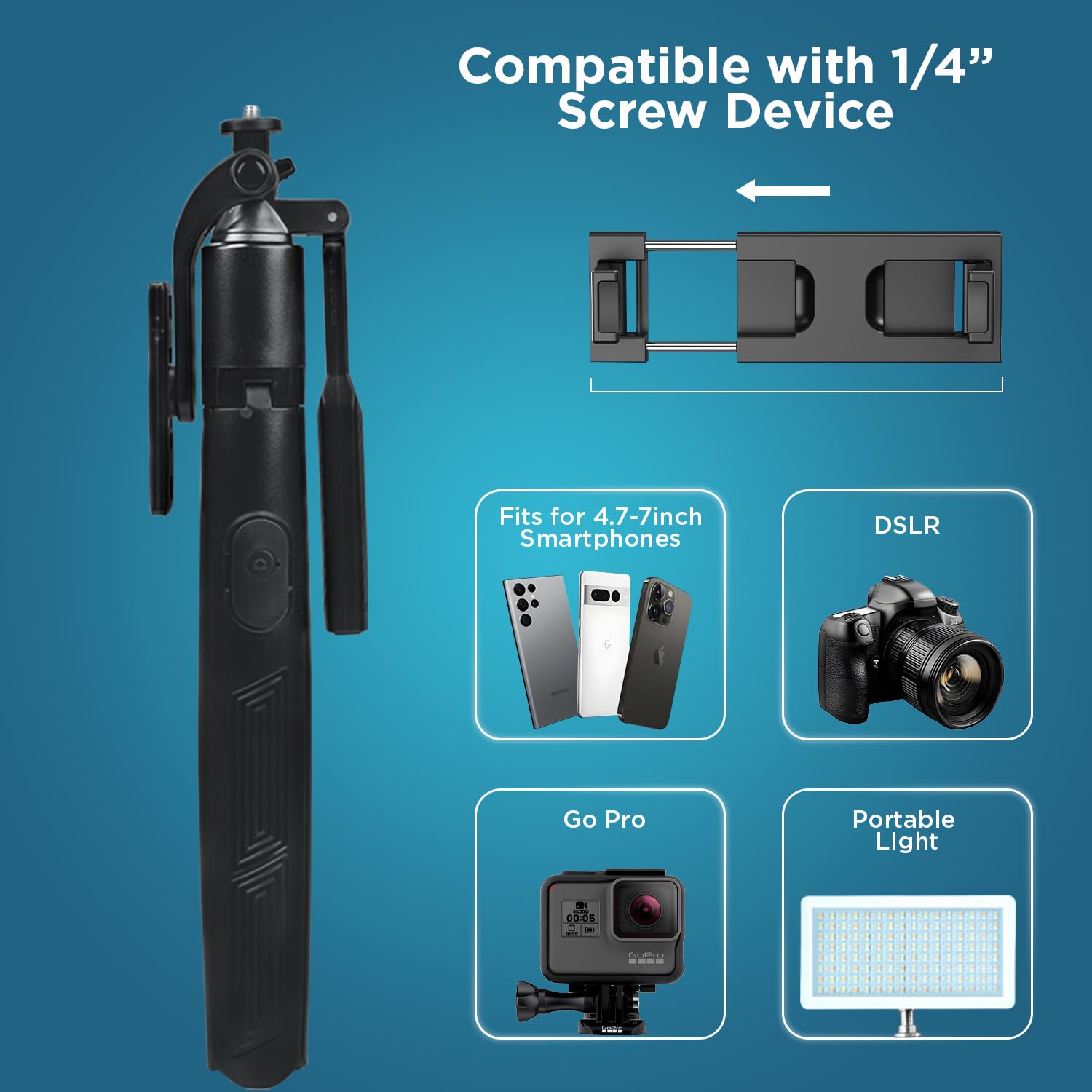 - Stable Tri-Leg Tripod Base: The reinforced quad-leg design offers solid support and excellent balance on various surfaces. Its secure locking mechanism minimizes shaking for sharper photos and smooth, shake-free video recording.