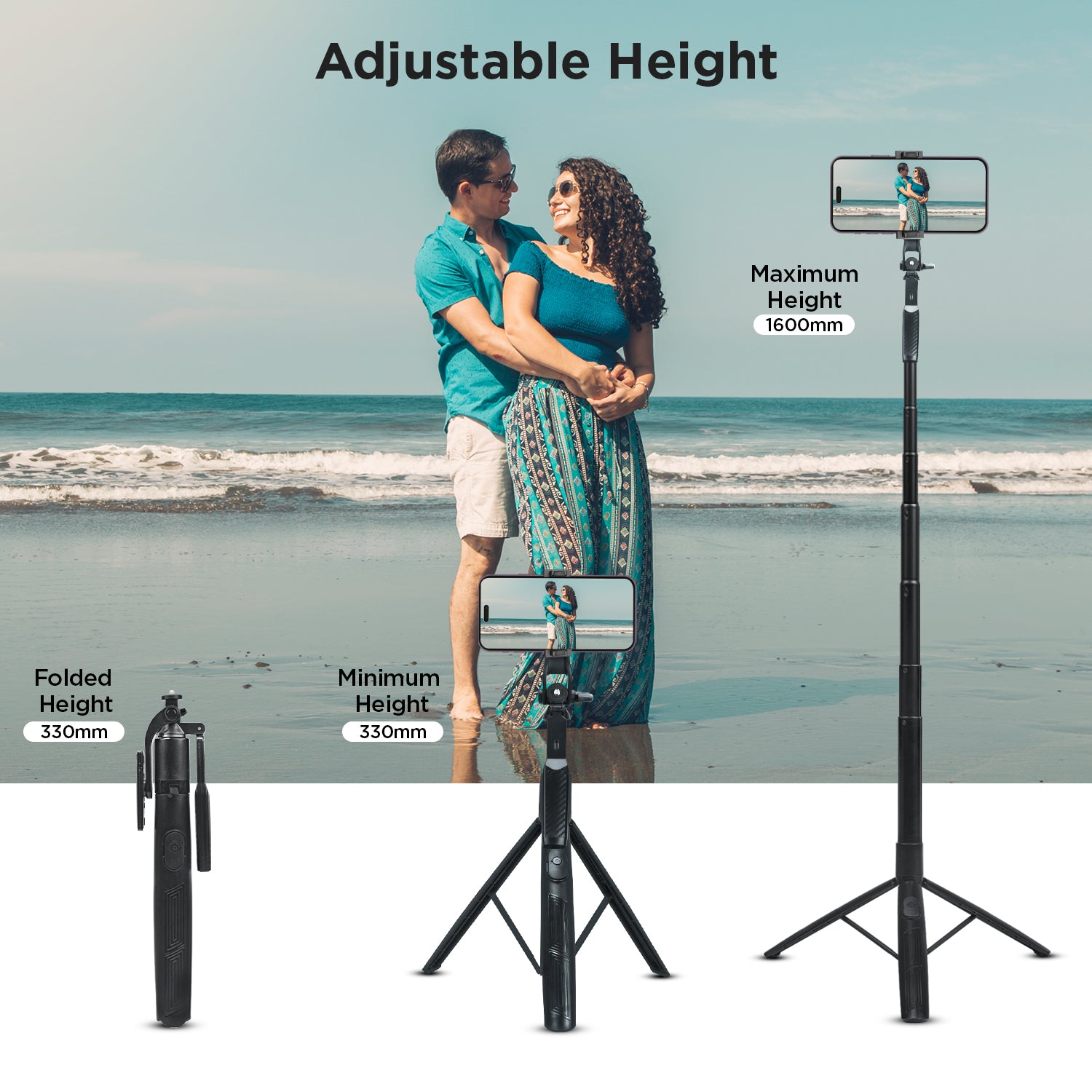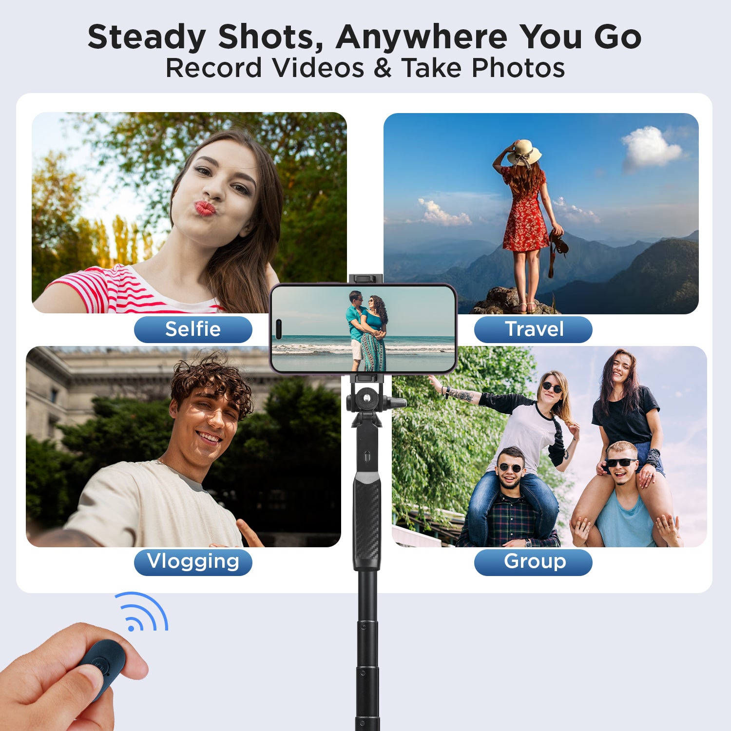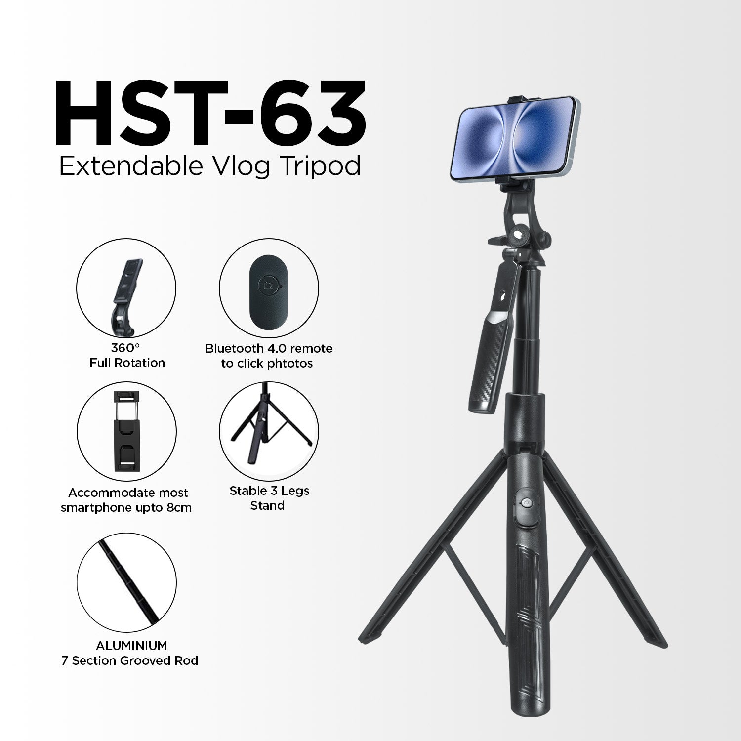 - Ultra-Long 63-Inch Extension: Capture stunning wide-angle selfies, tall group photos, and overhead vlogs with ease. The HST-63 extends up to 63 inches, making it perfect for travel, events, outdoor adventures, and pro-style content creation.