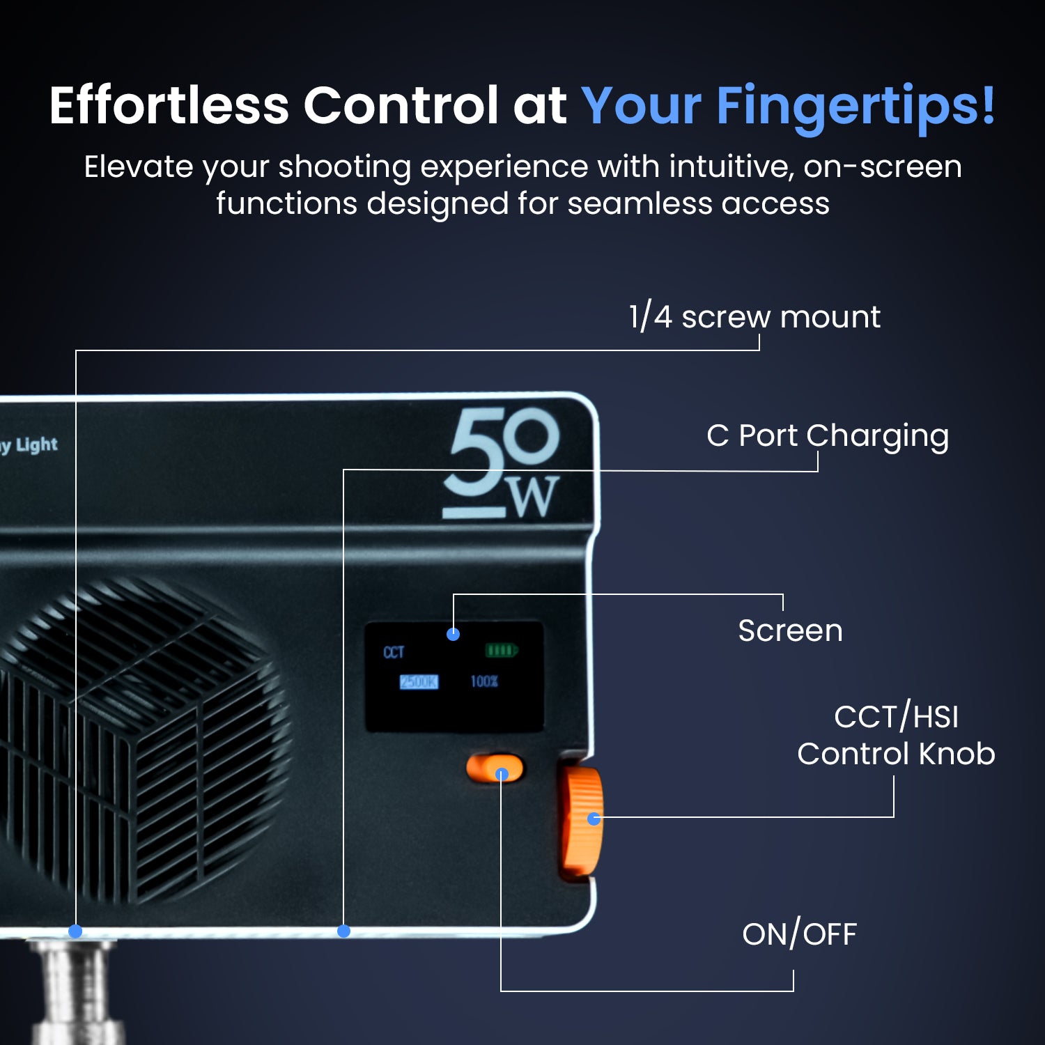 - Bright & Powerful 50W Light – Get stunning, true-to-life colors with 6600lux brightness and a high CRI of 95+. Whether you're a photographer, filmmaker, or content creator, this light ensures a professional touch in every shot.