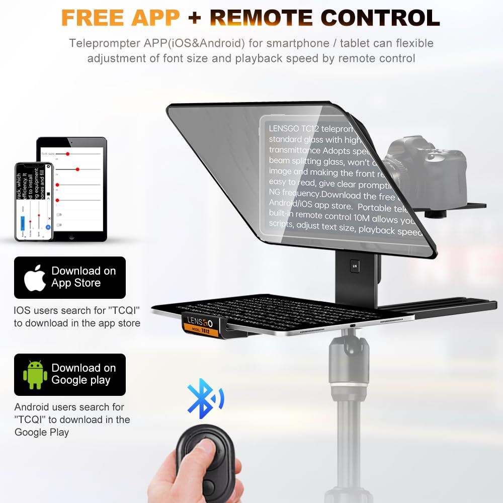 LENSGO TC12,12." Teleprompter for Camera/iPhone/iPad/DSLR w/ Remote, iOS/Android