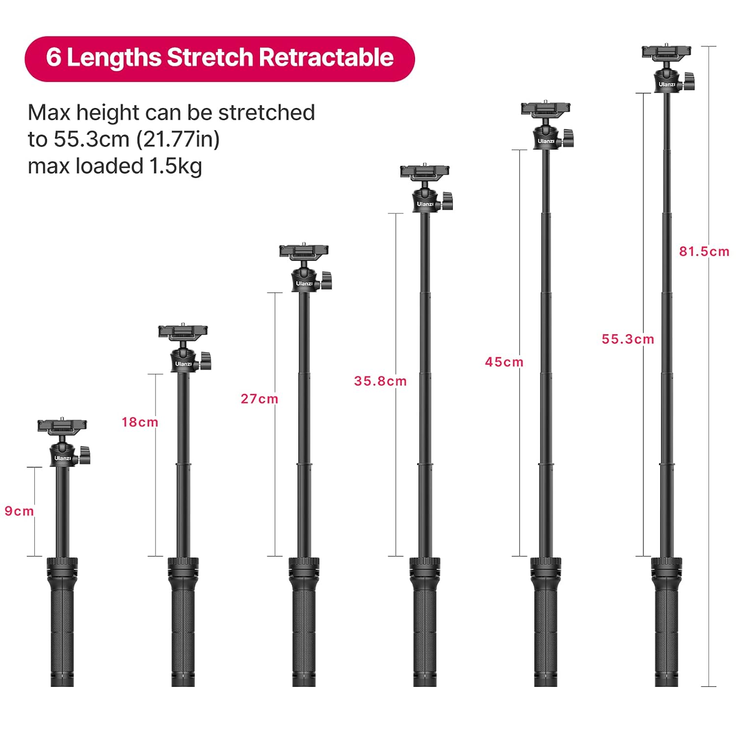 Ulanzi MT-34 Extendable Tripod, Selfie Stick, 2-in-1 Clamp