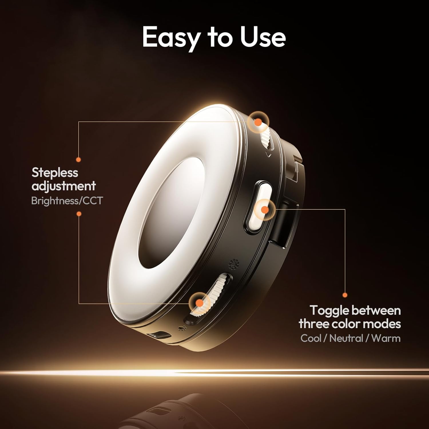 - Warm to Cool, Bright to Dim: Illuminance:160Lux@0.5m, Color Temperature 2500K / 5800K / 9000K (Warm / Neutral / Cool), Brightness adjustable 10%–100%, Fine tune color temperature and brightness effortlessly to create any atmosphere, even in low light.