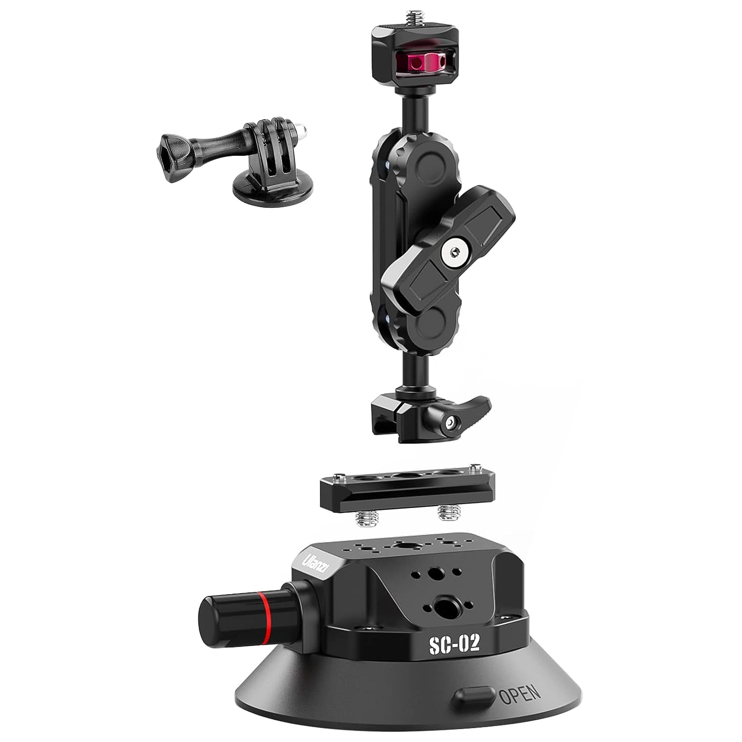 - Universal 1/4" Thread --- ULANZI SC-02 has universal 1/4" thread thread to mount photogrpahy equipment including vlog camera, dslr camera, light, microphone, for gopro action camera or any other accessories with 1/4" hole. Please Note: The action camera adapter (if need like for GoPro) is not included. Could be installed with Glass door / window, Car interior windshield / exterior windscreen door. Compatibile with various scenes application.
