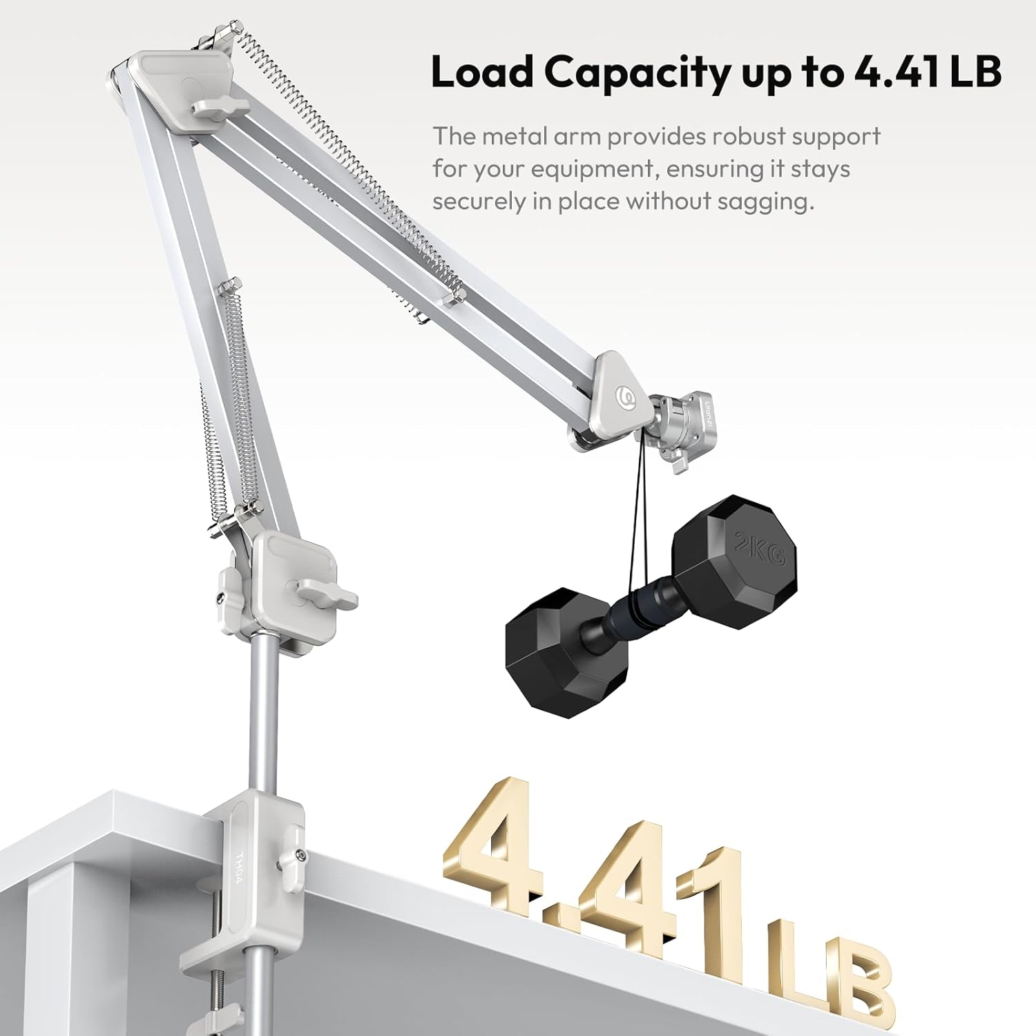 - Load Capacity up to 2KG: The metal arm provides robust support for your equipment, ensuring it stays securely in place without sagging