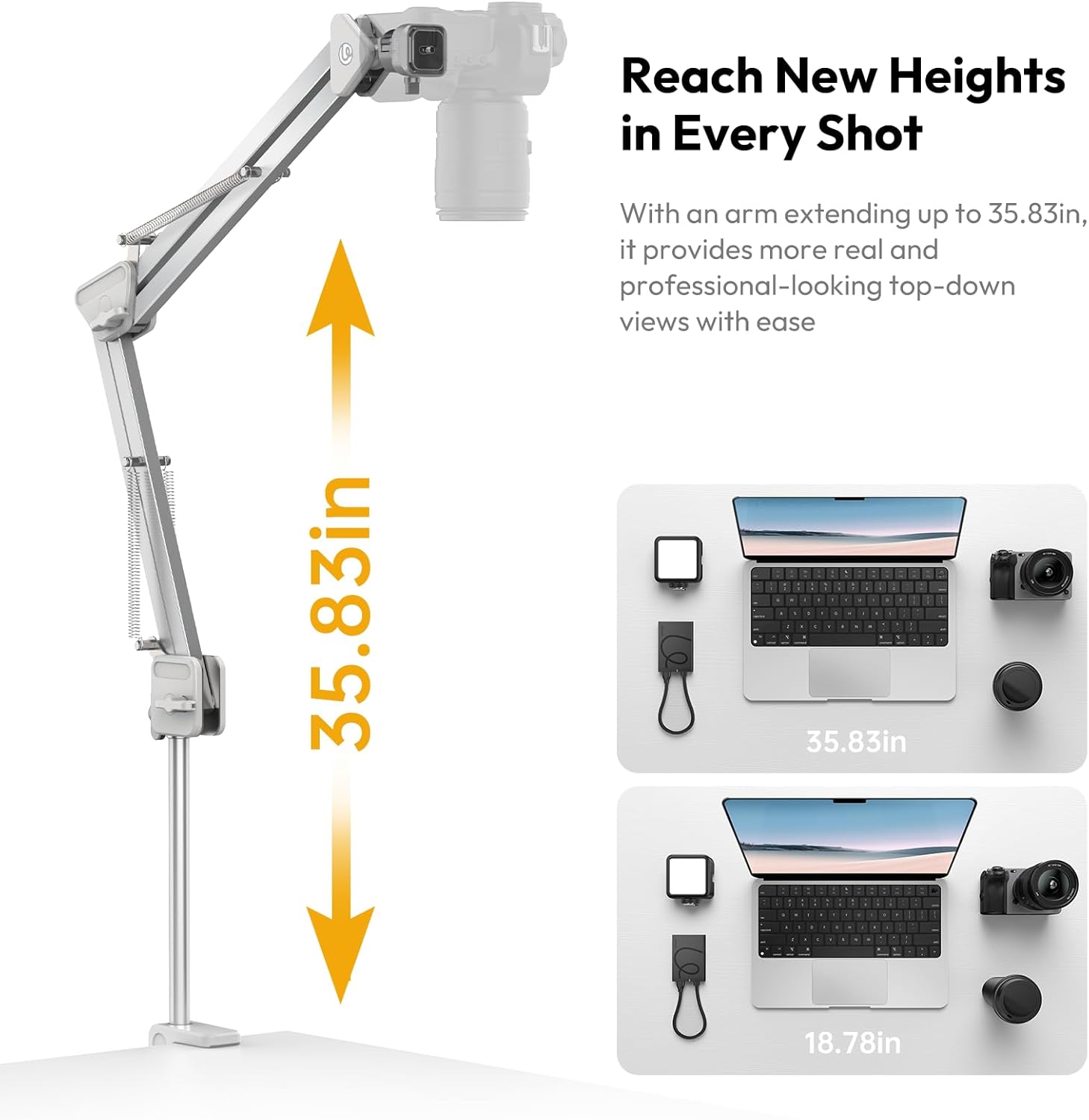 - Reach New Heights in Every Shot: With an arm extending up to 910mm, it provides more real and professional-looking top-down views with ease.