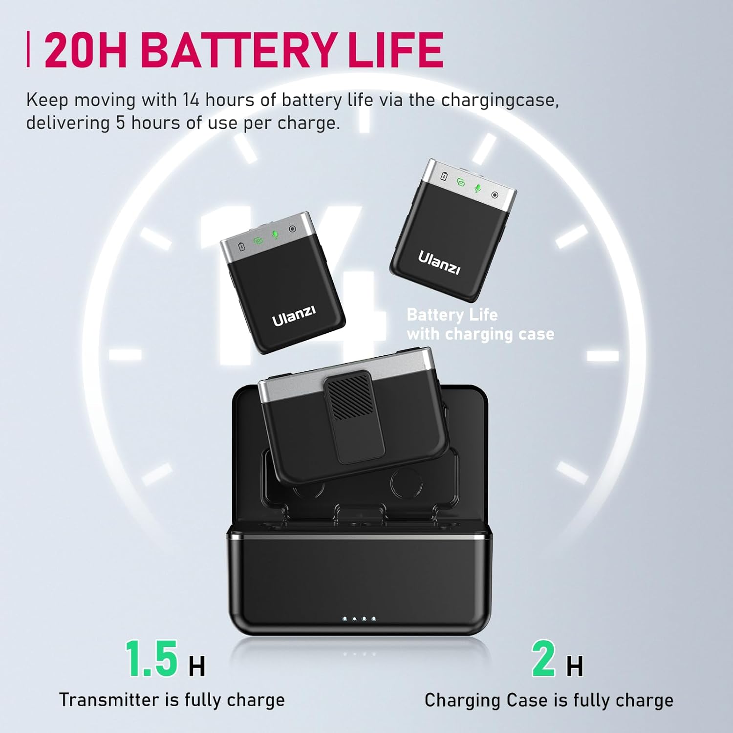 - Compact and Portable✓ The transmitter can be conveniently attached to clothing with the integrated back clip. Weighing only approximately 23 grams or 0.81 ounces, wearing the transmitter is comfortable and seamless.