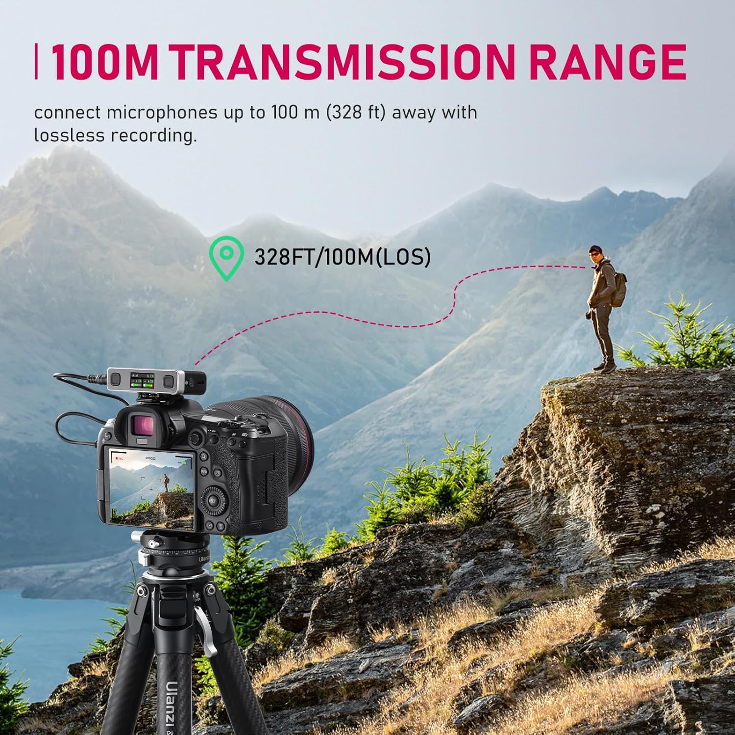 - 100M Effective Distance✓ With an impressive 100m transmission range, the U-Mic ensures clear audio even in busy environments like train stations and malls. It operates in the 2.4GHz frequency band to avoid interference from TVs and radios, providing consistent and reliable audio.