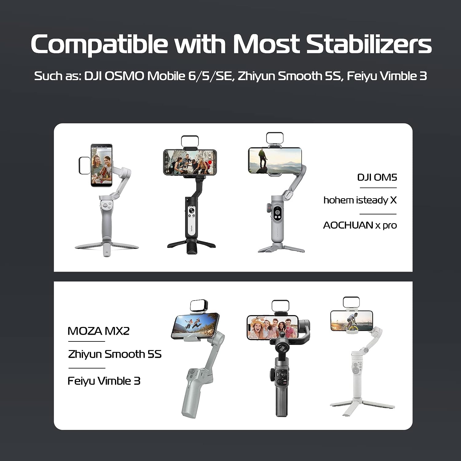 - Widely Used: This magnetic selfie fill light is compatible with DJI OSMO Mobile 6, OM 5, OM 4, OM SE and other 99% mobile phone stabilizers on the market. Perfect fill light for video, live broadcast, selfie, etc.