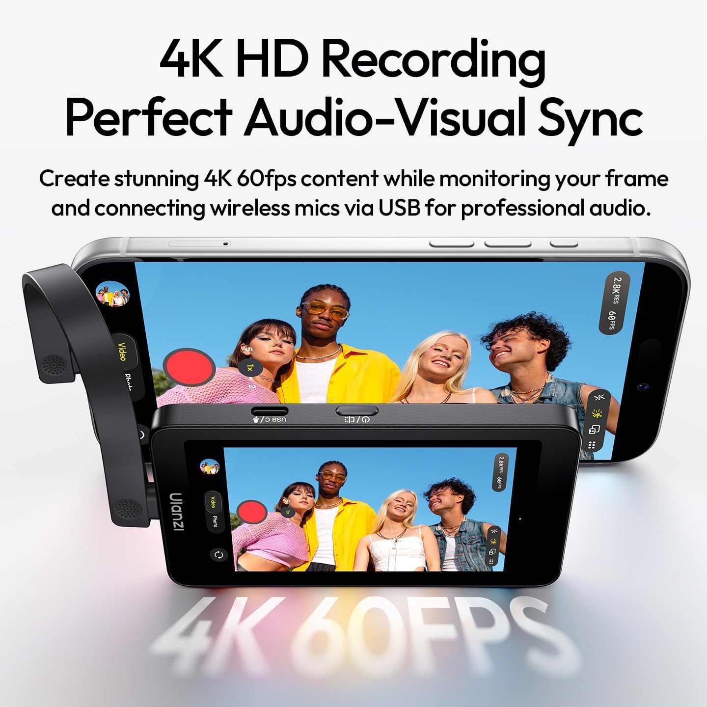 • 【4K 60fps Recording & Audio-Visual Sync】Capture stunning 4K 60fps content, monitor frames in real time on the selfie monitor screen, and connect wireless mics via USB for professional, synced audio-visual quality.