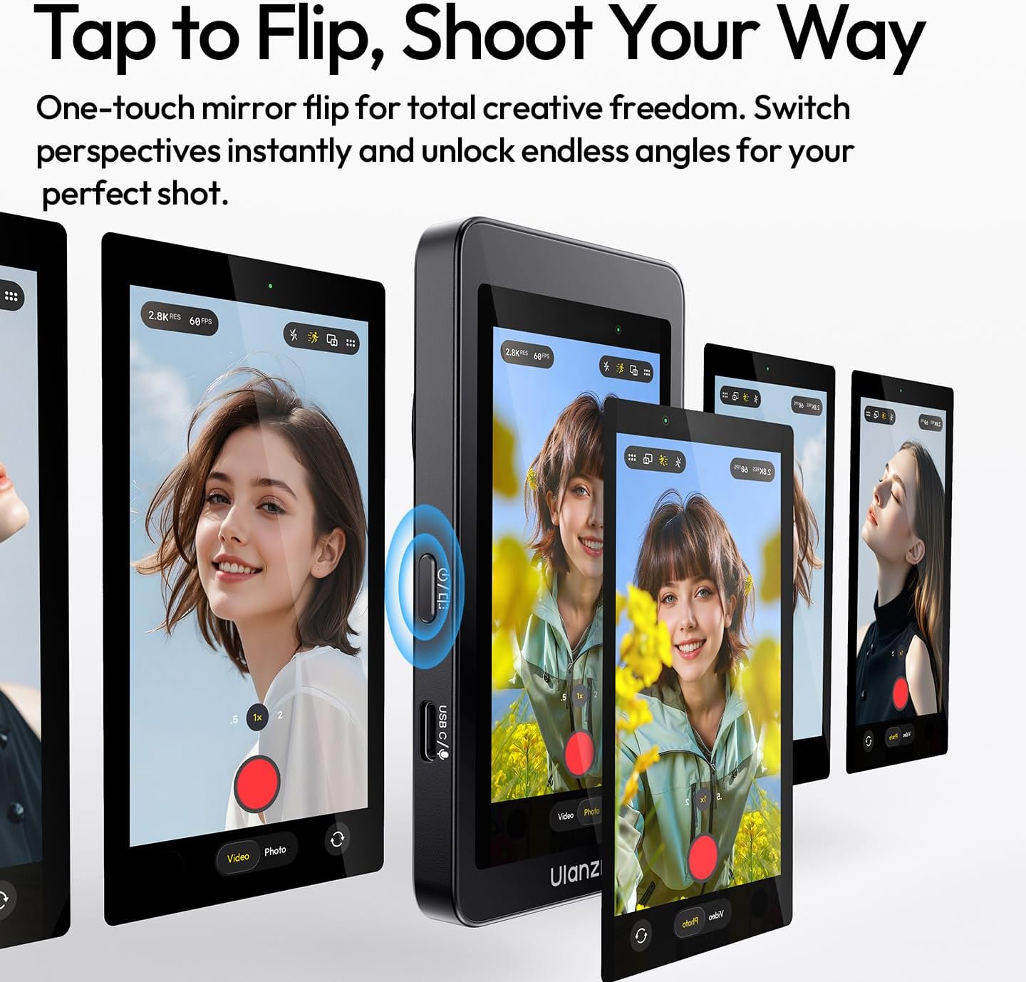 • 【One-Tap Mirror Flip】Switch perspectives instantly with a single tap on the selfie monitor—unlock endless creative angles and shoot your way with total freedom.